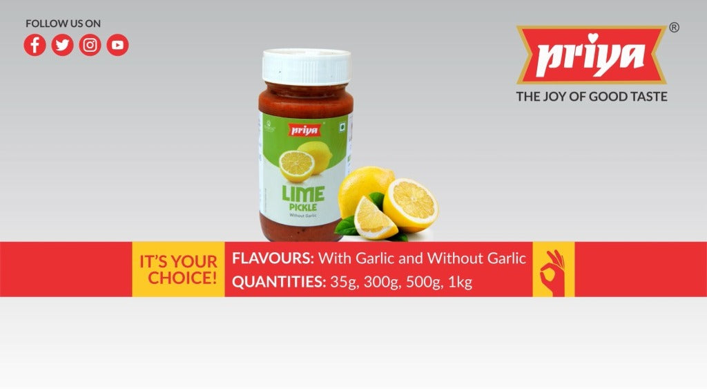 Priya Foods is a legendary brand started in 1980 and is a household name primarily in South India famous for its pickles and chutneys. Along with international recognised Food Safety Management System certifications, with commitment towards hygiene and safety. It strives to consistently bring to you tasty, mouthwatering pickles which will remind you of home. Priya Foods has successfully taken the goodness of South Indian pickles all over the world!
